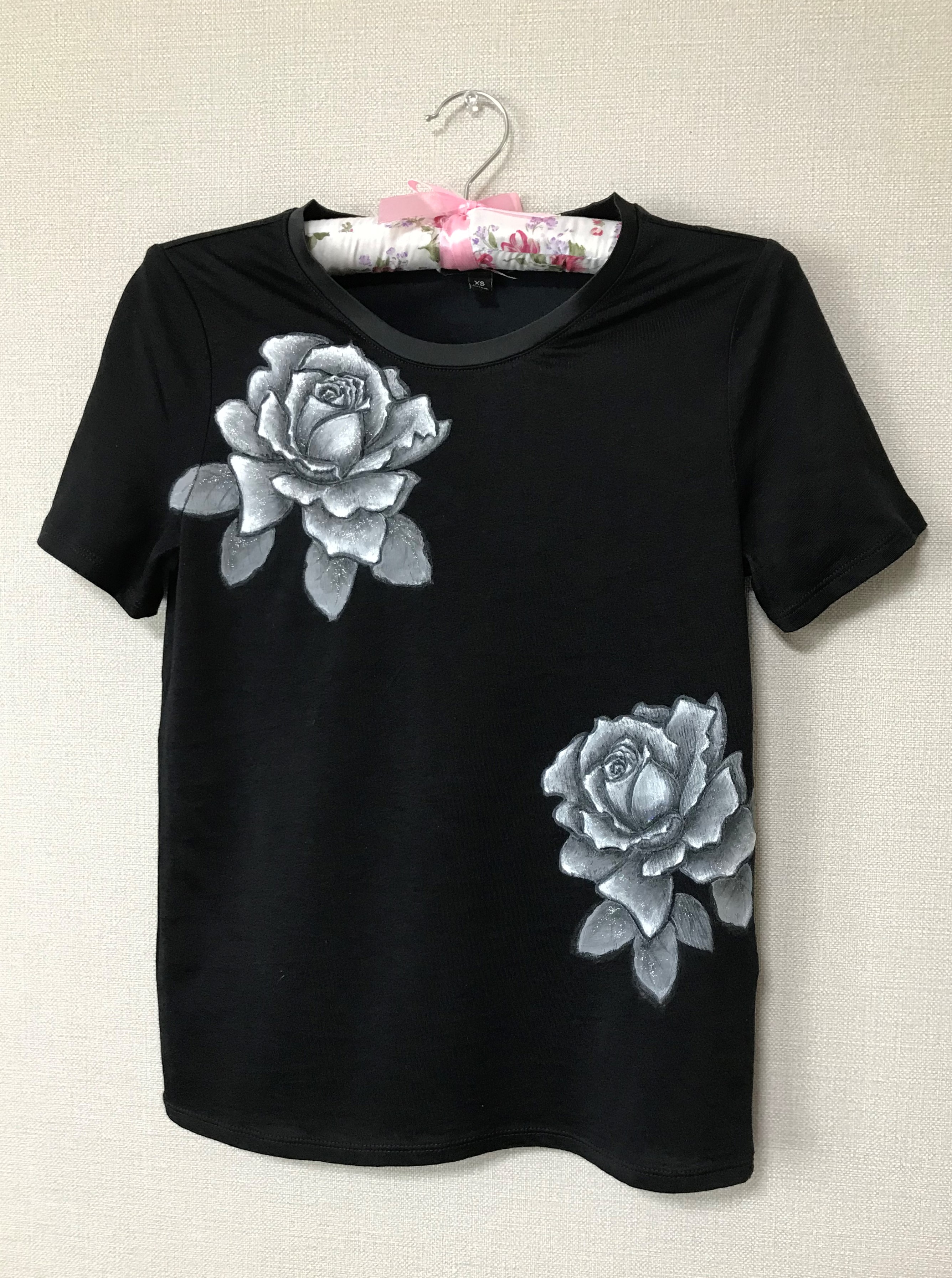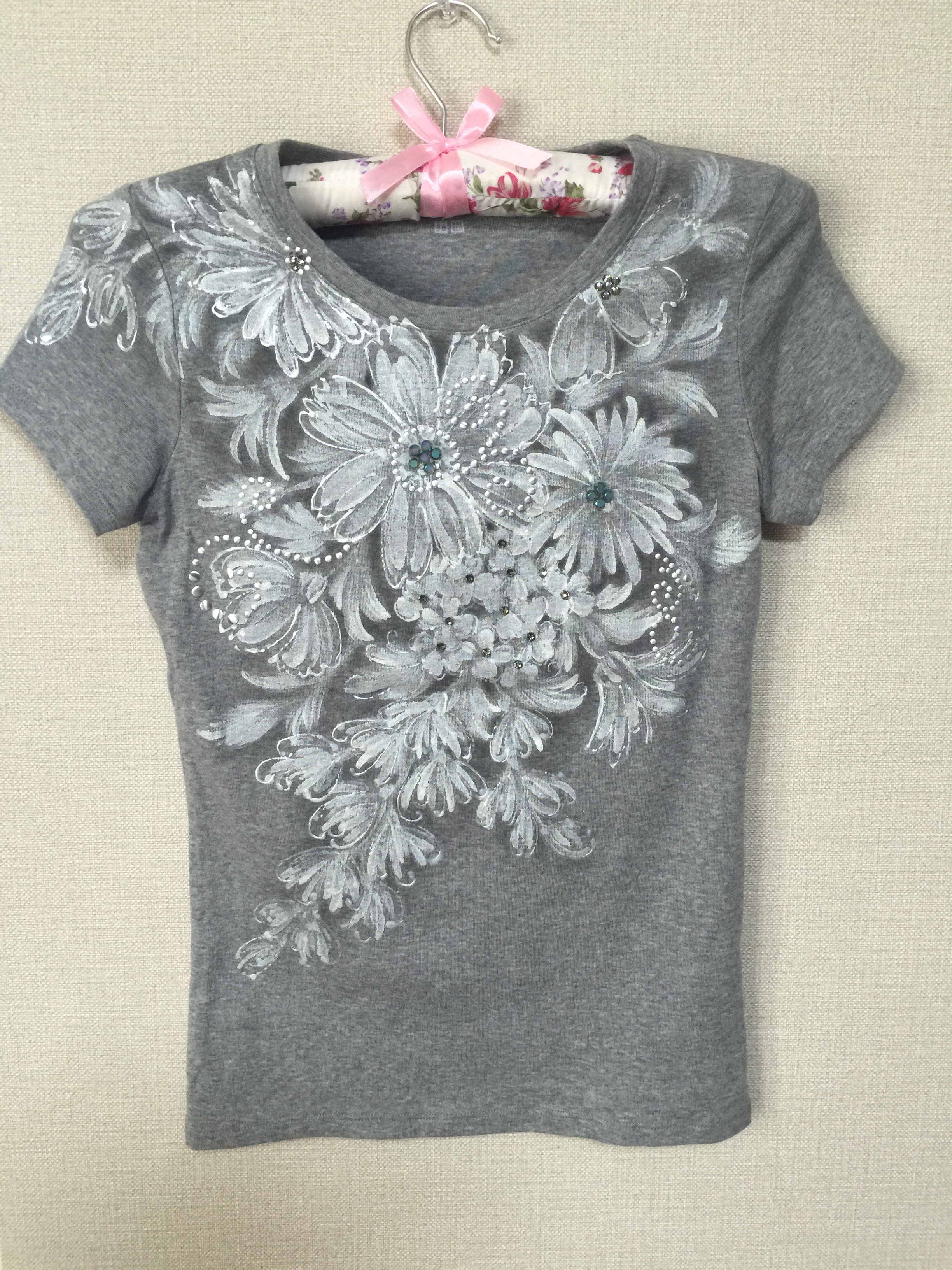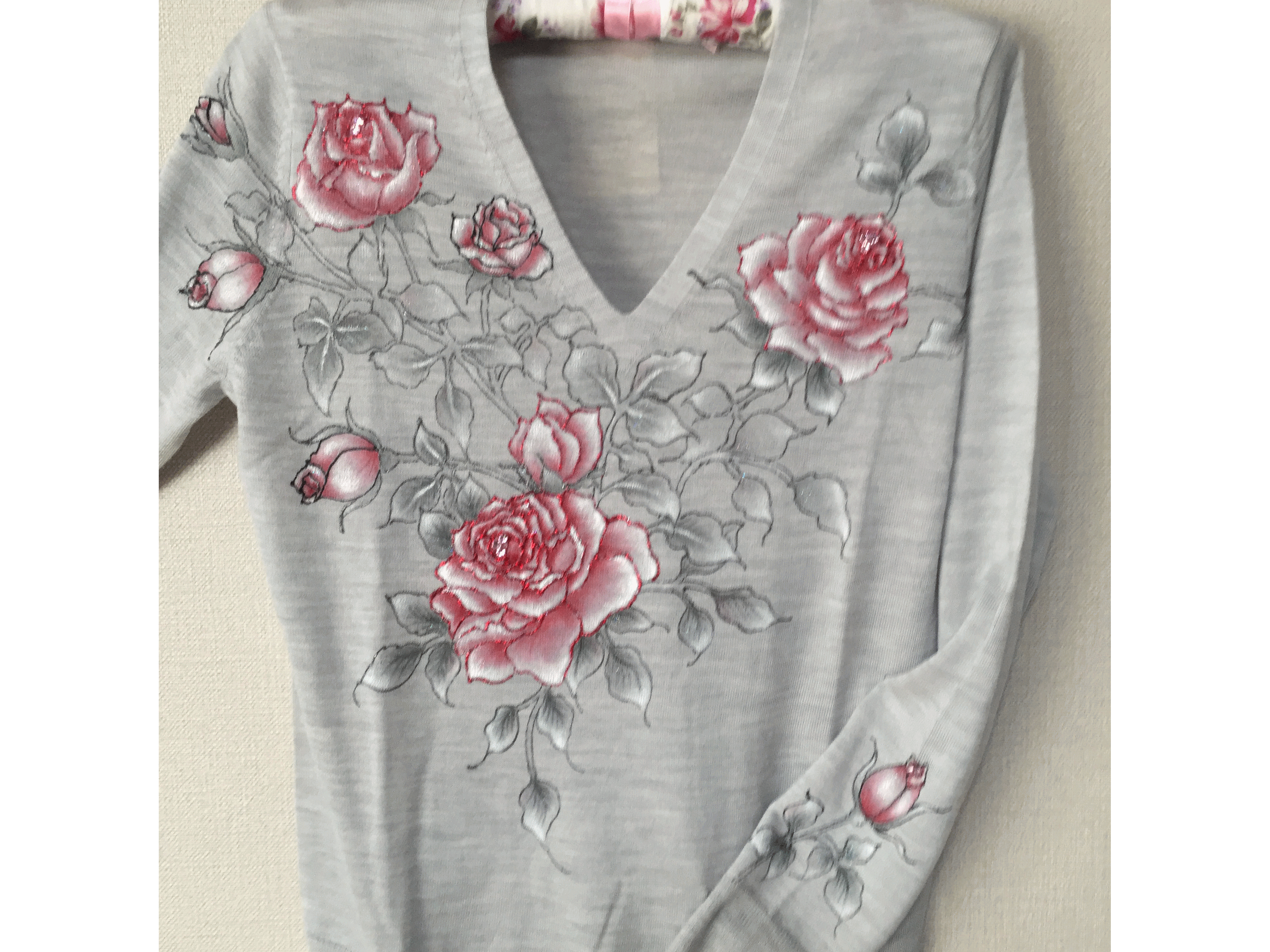 「ファブリック彩花」とは 「一筆彩花」の技法を使い、布用絵具で布製品に花を描いたり、プリントをしたりします。 貴女だけのオリジナルのお洋服ができます。 こちらは塗り重ねることもできます。 ・・・スカーフ・ハンカチ・布製バッグ・Tシャツ・カーディガン・ワンピースなどに描けます・・・ ◎Tシャツに描きました ◎洋服にプリントしました