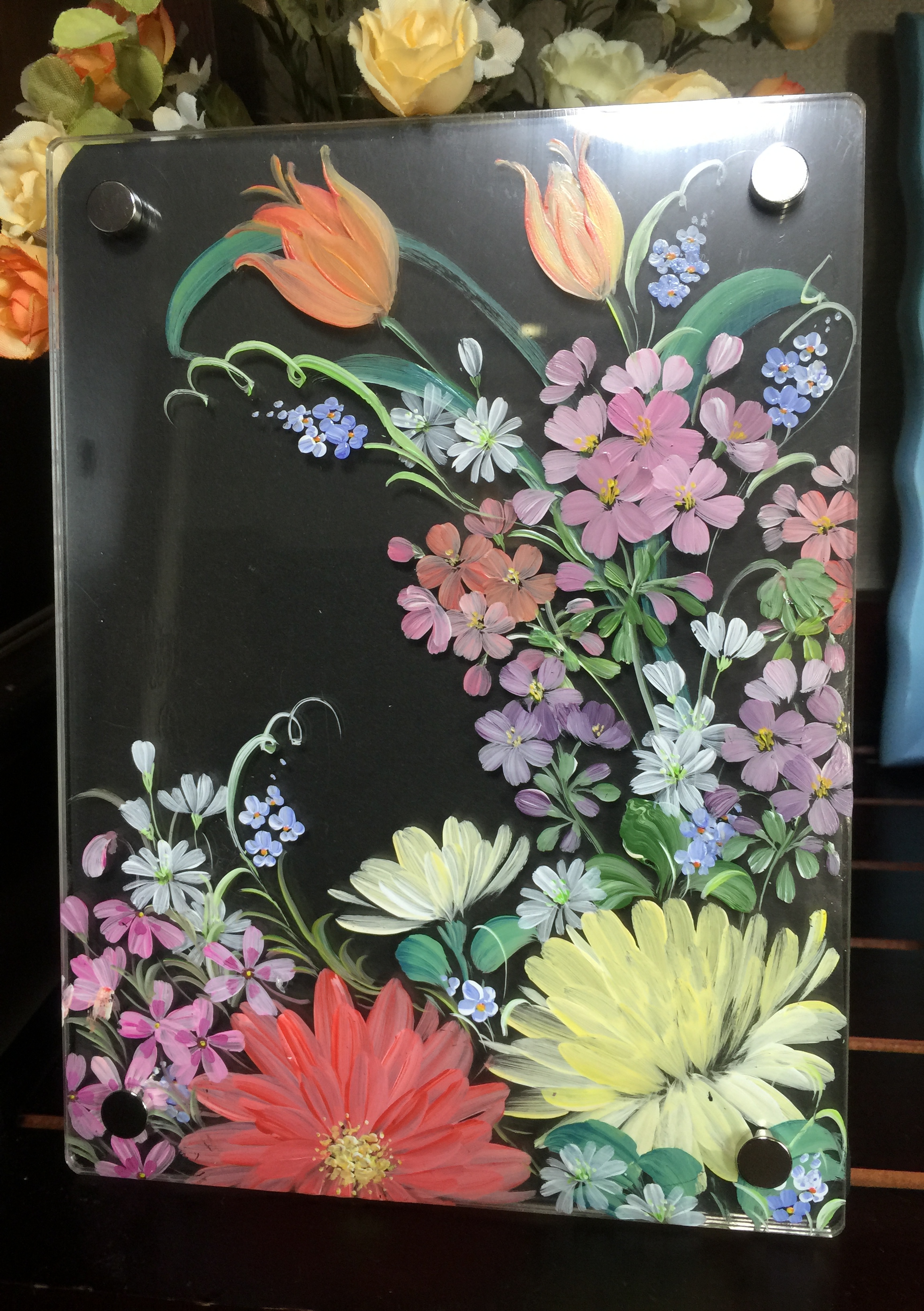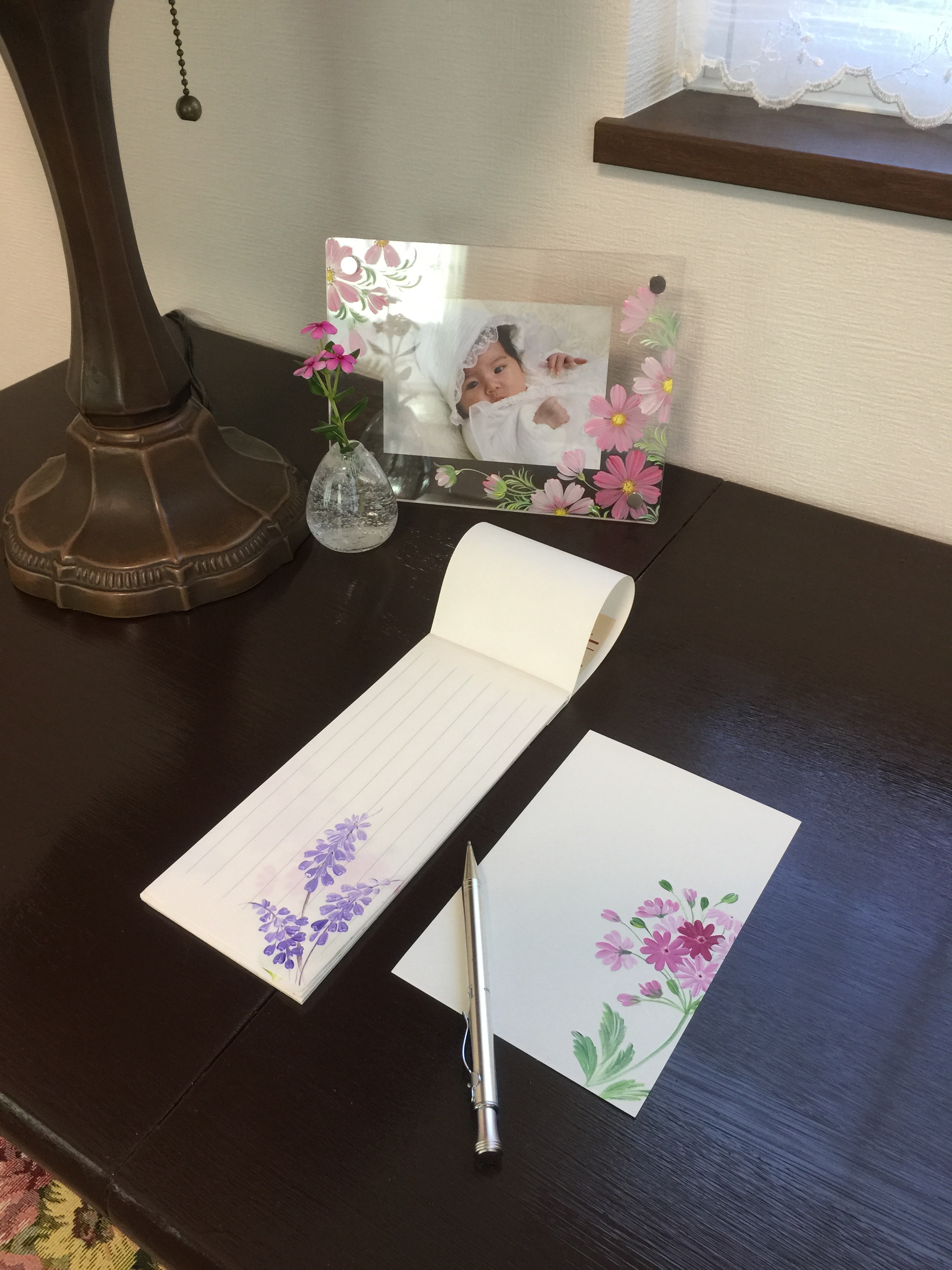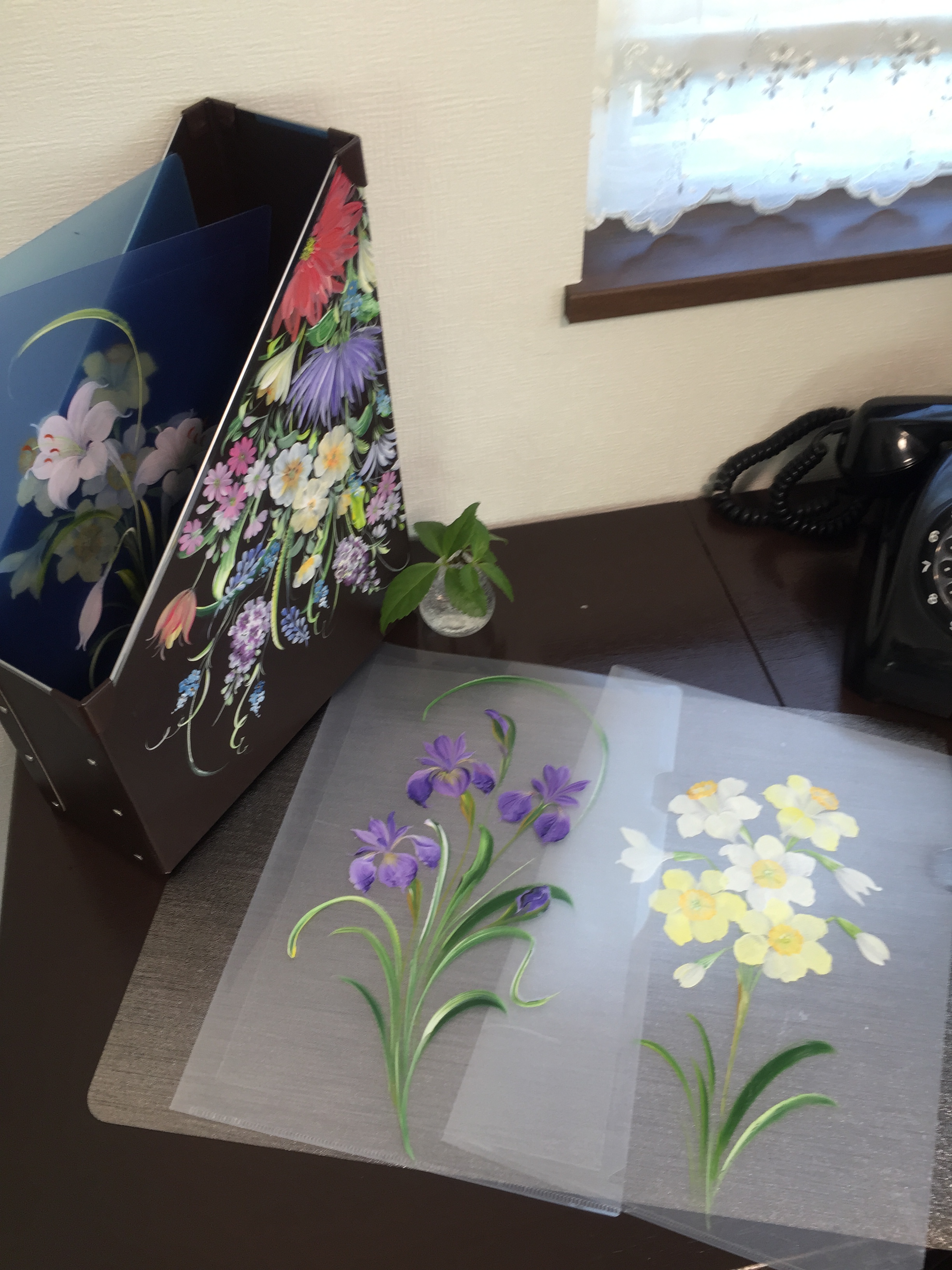 日本の四季を彩る花々を、色々な素材に「一筆彩花」の技法で描きました。 初級作品 便箋に手書きのお花でお便りを! 初級作品 ポストカード、一筆箋にお花を添えて! 初級作品 眼鏡ケースにマーガレット! 初級作品 お花のランチョマットでティータイム! 初級作品 クリアファイルにもお花を咲かせて! ※Crystal fiore アクリル製フォトフレームの中に手描きのお花を浮かべて! *この作品は「Crystal fiore」の手法で描きました ※ファブリック彩花 身近なTシャツも素敵なオリジナル作品に! *この作品は「ファブリック彩花」です。