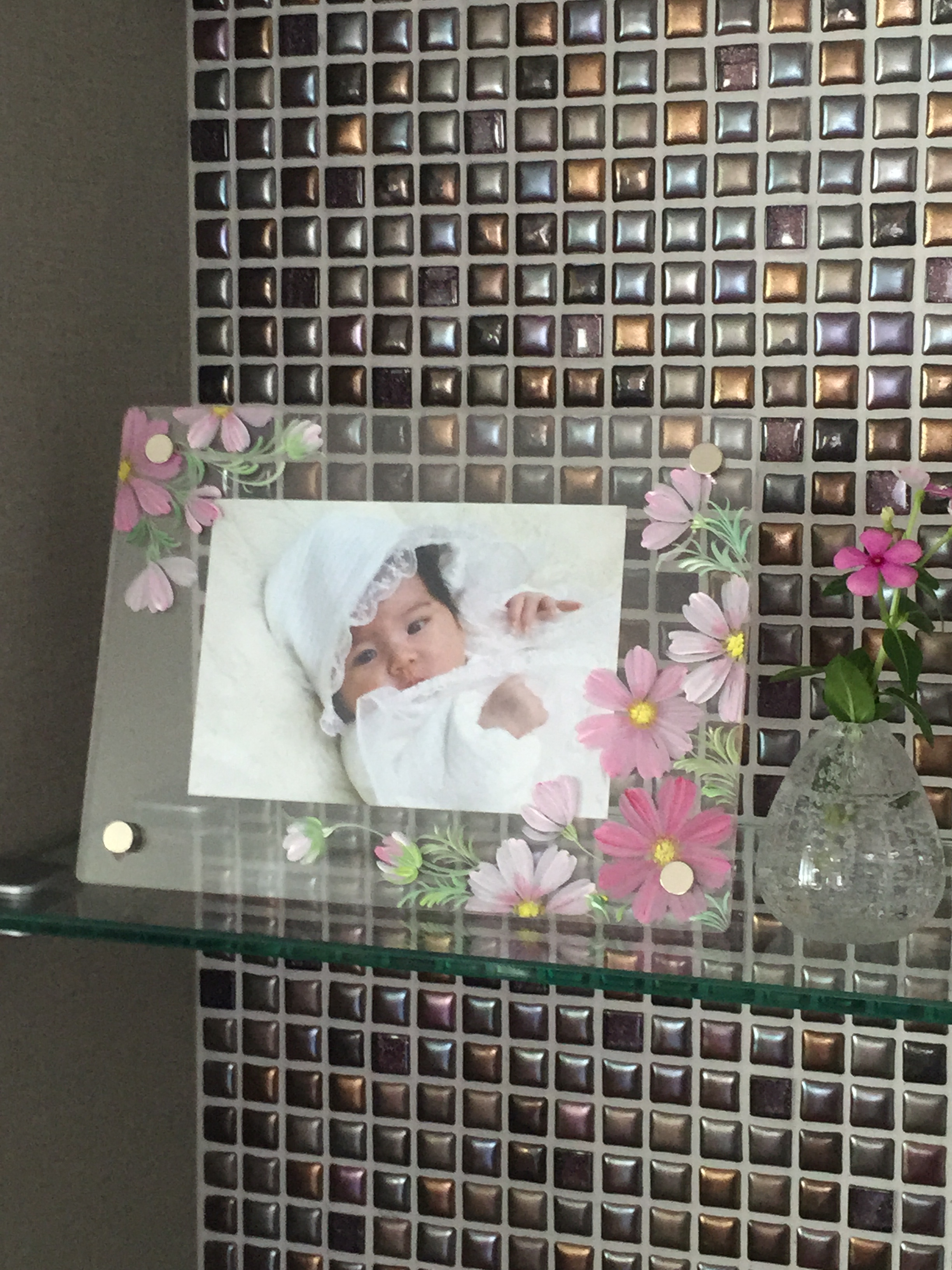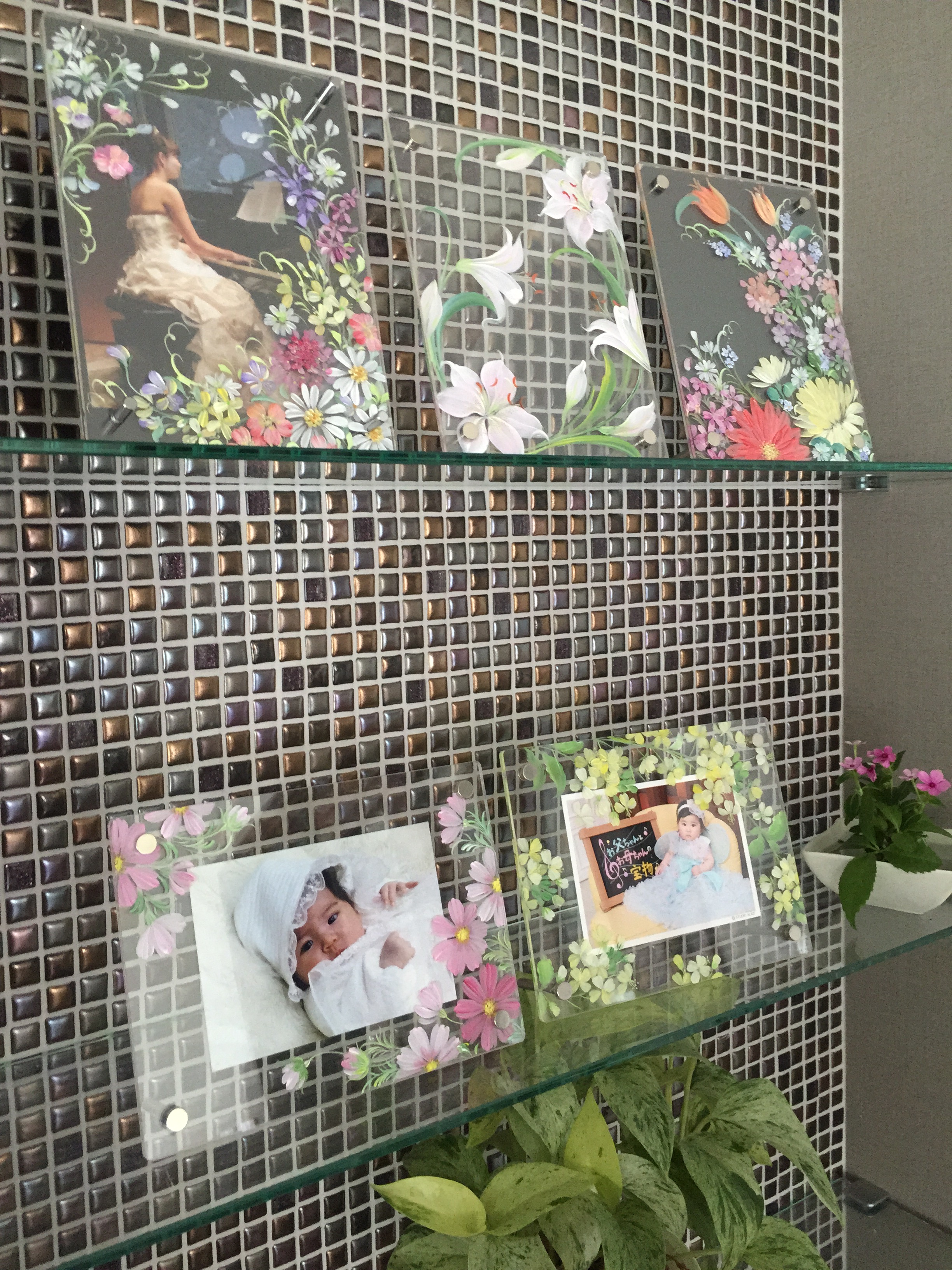 「Crystal fiore(クリスタル・フィオーレ)」とは、 何枚かの透明なアクリル板に、「一筆彩花」の技法で花を描いていきます。 それらを重ね合わせることで描いた花たちがお互いに重なりあい、 あたかも奥行きのある立体的な花園になります。 ◎コスモスのお花で喜びを!